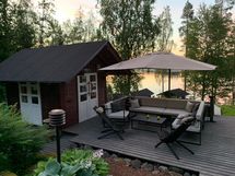- Tupakeittiö, 3 h, aula, 2 kuistia, kesäkeittiö, rantasauna, grillikatos, ulkowc/varasto