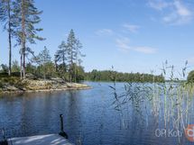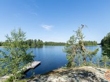 Yli 6000 neliön tontilla on sekä puutarhamaista nurmialuetta istutuksineen että puustoa ja kalliota. Pihapiiri on huoliteltu, aurinkoinen ja valoisa. Omaa rantaviivaa tällä kiinteistöllä on hulppeat 430 metriä.