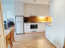 Paljon työskentelytilaa, Lasikaapit, Laminaattitasot, Astianpesukone, Liesi tai uuni erikseen, Jenkkikaappi