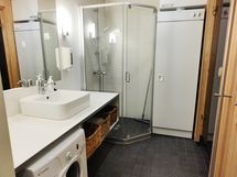 Suihku, Suihkuseinä, Pesukone, Kuivauskaappi, Laattalattia, Laattaseinä, Lattialämmitys, Erillinen WC
