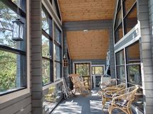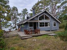 Jykevä hirsimökki, 59 m2, pqrvi 20 m2, lasitettu kuisti 23 m2, isot ulkoterassit, huvimaja. Tontti 0,86 ha. Rantaviivaa 140 m. Rakennusvuosi 1991, erillinen rantasauna 2006. Porakaivo, aurinkopaneelit, aggregaatti. Pakastava wc. Kallioon rakennettu venelaituri, syväys 150 cm. Huikeat näköalat Ahvenanmaalle saakka yli Iniön aukon. Ei naapureita. Auto- ja venepaikka satamassa, lyhyt venematka.