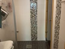- Varustus: suihkuseinä, pesukone, lattialämmitys, suihku. Varustus: lattialämmitys, peilikaappi, bidee-suihku.