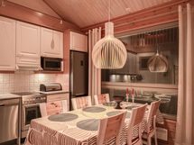 - Keittiön varusteet: Jääkaappipakastin (Samsung), uuni (Electrolux Inspire), liesi (Electrolux Inspire), astianpesukone (Electrolux), mikroaaltouuni (LG) ja liesituuletin (Rosenlew). Liesi: Keraaminen liesi.
