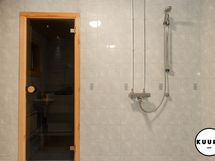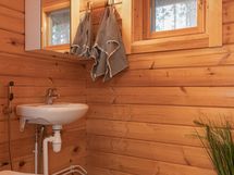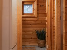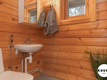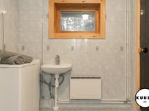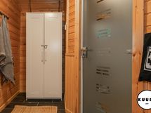 - Pesutilojen varusteet: Suihku, pesukone, pesuallas, lattialämmitys ja pesukoneliitäntä. Pesutilojen kuvaus: Pesuhuoneessa on suihkun lisäksi käsienpesuallas ja paikka pesukoneelle sekä kulku saunaan ja pukuhuoneeseen. Erillisten WC:n lukumäärä: 1. Erillisen WC:n varusteet: WC-istuin, pesuallas, peilikaappi, bidee-suihku ja lattiakaivo. Erillisen WC:n kuvaus: Loma-asunnossa on erillinen wc.