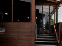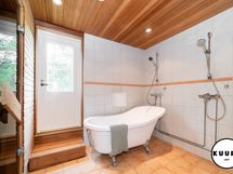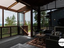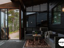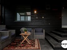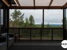 Pääterassi on tilava, katettu ja lasitettu – täydellinen paikka nauttia maisemista säällä kuin säällä. Lisäksi päämakuuhuoneesta on käynti omalle pienelle, suojaisalle terassille, joka sopii vaikkapa aamukahvin nauttimiseen luonnon äärellä.