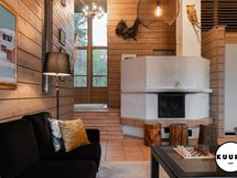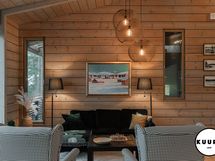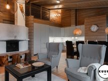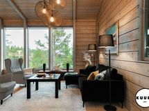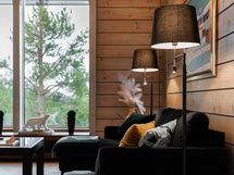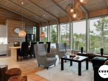 Takkatulen loimussa voit istua sohvalla ja ihailla huvilan suurista ikkunoista avautuvaa henkeäsalpaavaa maisemaa, joka ulottuu silmänkantamattomiin. Katse kulkee yli metsäisten vaarojen ja avautuu kilometrien päähän aina Riisitunturin rinteille asti – näkymä on kuin elävä taulu, joka muuttuu vuodenaikojen mukana.