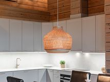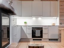 Olohuoneen, keittiön ja ruokailutilan muodostama kokonaisuus on huvilan sydän.