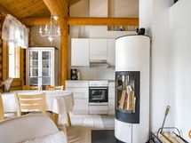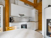 - Jenkkikaappi, lattialiesi, keraaminen liesi, liesituuletin alkuperäinen (yhdistetty kuivauskaapin ja kylpyhuoneen ilmanvaihtoon), mikroaaltouuni, kaapistot, kiinteät valaisimet.