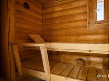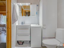 - Sauna, sähkökiuas, kylpyhuone, suihku, peilikaappi, allaskaappi, pesukoneliitäntä, lattialämmitys, kiinteät valaisimet.