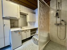 - Varustus: suihkuseinä, pesukoneliitäntä, kuivauskaappi, lattialämmitys, wc-istuin, suihku, peilikaappi, kiinteät valaisimet, kylpyhuonekaapisto. Erillisen WC:n kuvaus: pihalla kompostoiva wc.