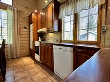 - Liesi: sähköliesi. Työtasot: laminaatti. Kylmäsäilytys: jääkaappi/pakastin. Varustus: liesituuletin, mikroaaltouuni, astianpesukone. Jenkkikaappi