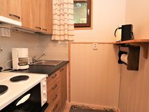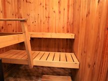 Löylyhuone: sähkökiuas, lattiassa klinkkerilaatat