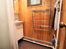 Pesuhuone: Kahdella seinällä Fibo kosteustilan levy, lattiassa klinkkerilaatat, sähkölattialämmitys, sähkökäyttöinen pyyhekuivain