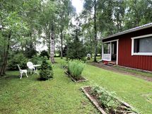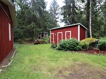 Pihapiirissä on mökin lisäksi varastorakennus, erillinen autotallirakennus,