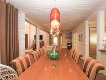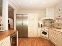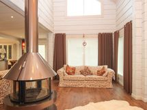Keittiö moderneilla varusteilla, Miele koneet. Alakerran sydän on reilukokoinen kokoinen oleskelutila ja yksilöllinen takka. Uloskäynti katettulle terassille, josta on näkymä Saimaalle. Kauniit kylpyhuoneet. Rentouttava saunaosasto, jossa on katajalla sisustetut seinät. Täällä viihdytään.