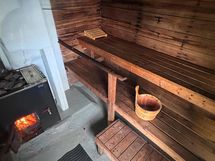 Varusteet: puukiuas. Erillinen rantasaunarakennus. Seinämateriaali: paneeliseinä