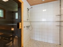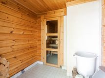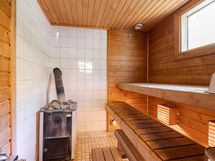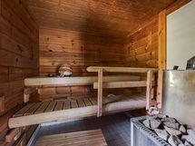 Kiuas: Puukiuas. Kaksi saunaa toinen sisällä ja toinen rantamökillä.
