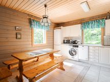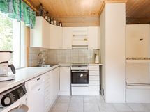 Keittiön varusteet: Liesi, jääkaappipakastin, astianpesukone ja liesituuletin / hormi. Liesi: sähköliesi.