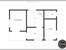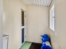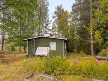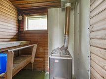 Varusteet: Puukiuas. saunan lauteet, saunapaneeli. Seinämateriaali: Puuseinä. Lattiamateriaali: Betonilattia