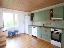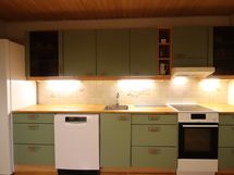 - Liesi: keraaminen. Työtasot: puu. Kylmäsäilytys: jenkkikaappi. Varustus: astianpesukone, kiinteät valaisimet, liesituuletin / suodatin.