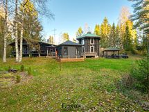Päärakennus koostuu kahdesta kerroksesta ja tornista, josta löytyy ylhäältä rauhallinen ja aivan ihana makuuhuone. Huvilan alakerrassa avautuu valoisa olohuone, täysin varusteltu keittiö, työhuone avaraksi tilaksi. Kaksi makuuhuonetta voidaan kaikki kalustaa oleskeluunkin. Tilojen kodikkuutta lisäävät puuseinät, sekä kaksi tunnelmallista takkaa, jotka luovat lämpimän tunnelman kutsuen sisään ympäri vuoden.