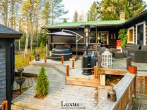Perinteinen puulämmitteinen sauna ja helppohoitoinen kylpyhuone täydentävät huvilan sisätilojen hurmaavaa tunnelmaa. Huvilan kaksi ilmalämpöpumppua ovat säädettävissä kulloisenkin tilanteen mukaan lämmittämään tai viilentämään tiloja. Terassilla odottaa palju, jossa voi nauttia tähtitaivaasta tai romanttisista sumuisista aamuista samalla kun ympäröivä luonto tarjoilee vuodenaikojen värisirkusta. Pihalla oleva ulkovaja, josta osa on lämmitettävää tilaa, tarjoaa kätevän ja tarpeellisen säilytystilan tavaroille ja työkoneille. Vaja soveltuu myös harrastamiseen tai työskentelyyn.