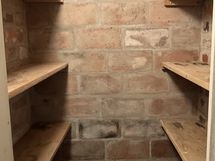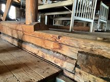 - Puu, pääosin hirsi. Uudempi osa on lautarakenteinen.