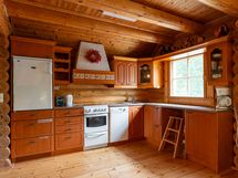 Liesi: keraaminen. Työtasot: laminaatti. Kylmäsäilytys: jääkaappi. Varustus: liesituuletin, mikroaaltouuni, astianpesukone. Keittiön kodinkoneita uusittu juuri 2025 ( valokuvissa vanhat koneet)