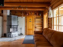 Lattia: Keittiössä: lauta. Pesutiloissa: laatta. Olohuoneessa: lauta. Makuuhuoneessa: lauta. Saunassa: laatta. Seinät: Keittiössä: puu. Pesutiloissa: puu. Olohuoneessa: puu. Makuuhuoneessa: puu. Saunassa: puu.