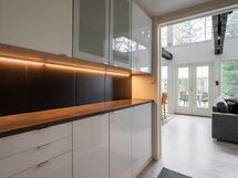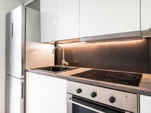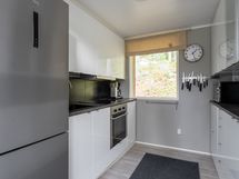 - Liesi: erillisuuni, liesitaso. Työtasot: laminaatti. Kylmäsäilytys: jääkaappi/pakastin. Varustus: liesituuletin, mikroaaltouuni, astianpesukone.