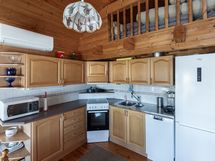 Liesi: sähköliesi. Kylmäsäilytys: jääkaappi, pakastin. Varustus: liesituuletin, astianpesukone.