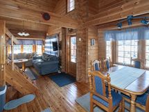 Ihastuttava hirsimökki tarjoaa kaiken, mitä mökkeilyltä voi toivoa. Avara olohuone/keittiö, oma makuuhuone, kylpyhuone, sauna ja parvi kutsuvat viihtymään ympäri vuoden. Erillinen rantasauna pesuhuoneineen tuovat ripauksen ylellisyyttä arkeen ja lomaan. Terasilta avautuvat upeat näkymät suoraan Päijänteelle – täydellinen paikka aamukahville tai ilta-auringon ihailuun.