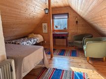 Yli 1,5 ha tontilla sijaitseva vapaa-ajan asunto, jossa on kookoonsa nähden hyvin tilaa isommallekin porukalle. Varsinaisessa asuinkerroksessa on mukavan kokoinen tupakeittiö,makuuhuone, sauna, wc ja lasitettu kesähuone. Makuupaikat alakerrassa kuudelle. (Kaksi levitettävää sohvaa, sekä levitettävä sänky) Toinen kerros on avointa tilaa, jossa sopii hyvin majoittumaan useampikin. Tällä hetkellä makuupaikat neljälle.