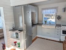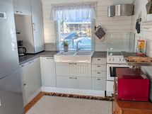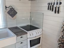 Liesi: keraaminen. Kylmäsäilytys: jääkaappi/pakastin. Keittiön kaapissa on myös pieni lämminvesivaraaja