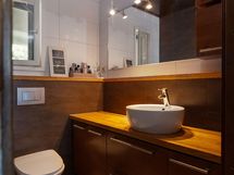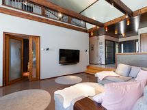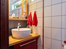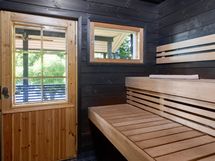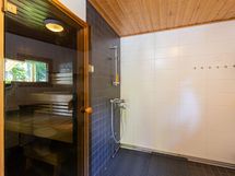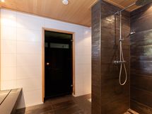 - pesutilat: 2 kpl suihku, erillinen wc 2kpl, molemmissa bidee-suihku liitäntä, peilit, peilikaappi, lattialämmitys, kiinteät valaisimet, sauna, heti valmis- sähkökiuas