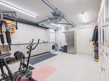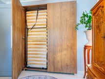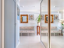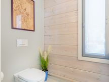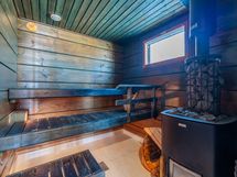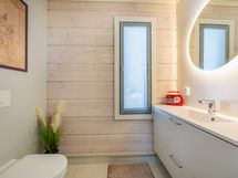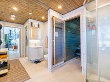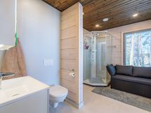 Kylpyhuone- ja saunaosasto tarjoavat toimivat puitteet arkeen. Varustukseen kuuluvat suihku, lattialämmitys, peili- ja allaskaapit sekä erillinen WC. Kodinhoitotilassa on pesukone ja kuivausrumpu, ja lisäksi tilavat säilytysratkaisut tekevät arjesta sujuvaa ja käytännöllistä.