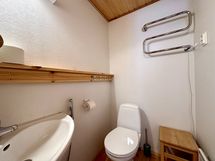 Lattia: Pesutiloissa: laatta. Saunassa: laatta. Seinät: Pesutiloissa: kaakeli. Saunassa: puu.