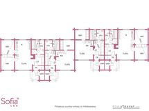 Asunnot 1 ja 4 kooltaan 59m2. Asunnot 2 ja 3 kooltaan 40m2.