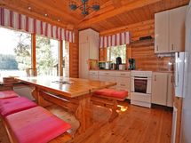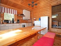 Keittiön varusteet: Liesi, jääkaappi, erillinen pakastin ja astianpesukone. Liesi: Keraaminen liesi.