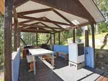 Kiuas: Puukiuas. erillinen saunarakennus.