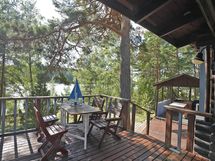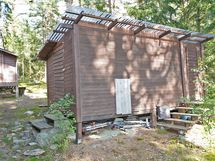 Tyyliltään perinteinen, hyvin hoidettu mökki, johon pääsee myös autolla pihaan asti (yhteysalus). Ilmeikkään vaihtelevaa etelä-lounaisrinnettä, johon on aseteltu rakennukset hyville paikoille. Rantaviivaa etelälounaaseen n.65m, vastakkaisen Pyytin saaren ansiosta suojassa käytännössä kaikilta tuulilta. Yksityisyys pihapiirissä täydellinen. Kahteen kertaan laajennettu päämökki, jossa hyvät makuutilat koko perheelle. Edustalla terassi ja kesäkeittiö. Lähempänä laituria erillinen saunarakennus, jossa myös saunatupa antamassa lisämakuutilaa. Runsaasti varastotilaa kaikelle tarpeelliselle tavaralle ja polttopuille. Melko nopeasti syvenevä ranta, johon pääsee suoraan laituriin moottoriveneellä. Porakaivo, jonka vettä on käytetty juomavetenä ja tuotto ollut aina riittävä normaalikäytössä. Sähköliittymä. Kaksi ilmalämpöpumppua hoitavat tarpeen mukaan niin lämmityksen kuin viilennyksen.