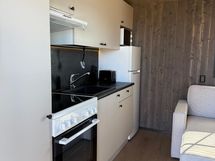 Tilaa isolle ruokapöydälle, Paljon kaappitilaa, Paljon työskentelytilaa, Laminaattitasot, Astianpesukone, Pesukoneliitos, Keraaminen liesi, Pakastin, Jääkaappi