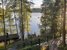 Aurinkoinen rinnetontti ja mökki Pyhäjärven rannalta Nokialta