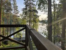 Mökin ikkunoista ja terassilta komeat näkymät järvelle.