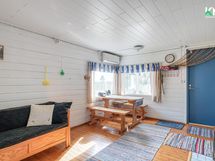 Luonnon rauhasta nauttivalle pienelle perheelle vapaa-ajan kiinteistö Nousiaisten Tiitissuontiellä. Avokeittiön ja olohuoneen takan luomassa tunnelmallisessa tilassa on mukava viettää vapaa-aikaa, pelaillen lautapelejä tai vaikka suunnitellen lähistön metsiin suuntautuvia marja- ja sieniretkiä. Rentouttavan saunan jälkeen voi nauttia luonnonrauhasta suojaisalla terassilla. Illan tullen on sitten ihana siirtyä yöpuulle erilliseen makuhuoneen rauhaan. Tervetuloa ihastumaan! Varaa yksityisesittelysi, Seppo Hakula, seppo.hakula@kiinteistomaailma.fi puh. 044 7799 044