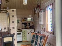 Mökissä on sähköpatterit ja puulämmitteinen kamina.