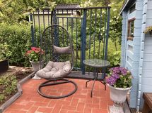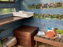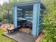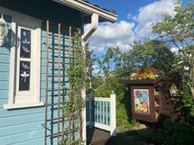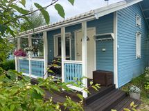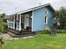Siirtolapuutarhamökki Oulun Äimärautiolla. Vuokratonttimme Siirtolapuutarhayhdistys ry:ltä on 340 neliötä. Tontilla on 25 neliön mökki, jossa lisäksi 2 m leveä kuisti, 9 neliön huvimaja, 7 neliön rakennus, jossa varasto ja ekovessa, sekä reilun 3 neliön kokoinen pesukatos tiskaamista ja pihan kolmatta vesipistettä varten. Mökissä on kiinteät sähköpatterit ja puulämmitteinen kamina. Peruslämpö mökissä on pidetty vuoden ympäri. Mökissä ja huvimajassa on kaksinkertaiset ikkunat. Rakennuksissa pesukatosta lukuun ottamatta on sähköt - kattolamput ja sähköpistokkeita sisällä ja ulkopuolella. Olemme rakennuttaneet mökin v.2007 uudelle tontille, kun aluetta laajennettiin. Tonttimme sijaitsee eriomaisella paikalla meren puolella. Matka parkkialueelle on n.100 m. Rakennuksissamme on erityisen tukevat perustukset. Mökissä on hyvät eristykset lattiassa, seinillä ja katossa. Korotettu huonetila. Mökillä voi käydä ja yöpyä läpi talven, mutta vakituisena asuntona se ei saa olla.
