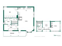 - Rantamökki n. 22/25 m2 (Pellopuu Oy, punahonka), autokatos/varastorakennus, puucee