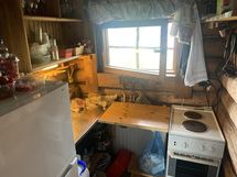 Lattia: Keittiössä: lauta. Olohuoneessa: lauta. Seinät: Keittiössä: puu.