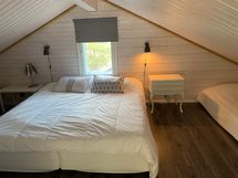Romponpolku 16 tarjoaa upean mahdollisuuden nauttia lomasta meren äärellä Paraisten Airistolla. Tämä vuonna 2015 valmistunut 107m2 vapaa-ajan rakennus on erinomaisessa kunnossa ja tarjoaa tilaa rentoutumiseen ja viihtymiseen ympäri vuoden. Kahden tilavan makuuhuoneen lisäksi mökissä on parvi, joka tuo lisätilaa esimerkiksi vieraille tai perheen pienimmille. Päärakennuksen lisäksi rannan puolella on ihastuttava 17m2 vierasmaja jossa viihtyisä vierashuone ja wc. Mökin sydän on avara olohuone jossa on tunnelmallinen varaava takka joka yhdessä aurinkopanelien ja olohuoneen ilmalämpöpumpun kanssa tuovat selvää säästöä sähkölaskuun. Puustellin keittiö on uusittu vuonna 2022 ja kodinkoneet ovat Siemensin laatutuotteita. Keittiön vaaleat kivitasot tuovat ripauksen luksusta arkeen. Keittiön antimista voit nauttia avarassa ruokailutilassa siirtyen päivällisen jälkeen olohuoneen puolelle nauttimaan yhdessäolosta. Kodinhoitohuoneesta ja saunasta pääsee terassille josta suora kulku rappusia pitkin rantaan. Oman rannan ansiosta pääset nauttimaan vesielämästä täysin rinnoin. Tontti on pinta-alaltaan 844,10 m2 vuokratontti jolla n. 13m rantaviivaa länteen, lapsiystävällinen hiekkaranta ja laituri. Alueella on yhteinen vesihuolto ja pienpuhdistamo. Lisäksi mökkiin kuuluu oma venepaikka suojaisassa venesatamassa, noin 100 metrin päässä johon pääsee autolla. Rannassa on sähköt ja vesi. Satama sopii erikokoisille moottori- ja purjeveneille. Tästä on hyvä lähteä isommille vesille tutustumaan saaristoon! Kohteen sijainti on erinomainen – pääset autolla perille ilman losseja-Airiston lomakeskus ja vierassatama ravintoloineen ovat vain parin kilometrin päässä. Paraisten keskustaan on noin 15 km, Turkuun noin 40 km. Tartu nyt tilaisuuteen ja hanki oma lempipaikkasi saaristosta! Esittelyt sopimuksen mukaan: Rabbe Holmberg, Lkv, 040 5574024, rabbe.holmberg@turunmaankiinteistot.fi __ Rompostigen 16 erbjuder en fantastisk möjlighet att njuta av fritiden vid havet i Airisto, Pargas. Denna år 2015 i bruk tagna 107 m2 stora fritidsbyggnad är i utomordentligt skick och erbjuder gott om rum för avkoppling och trivsel året runt. Förutom två rejäla sovrum har stugan ett sovloft lämpligt för gäster eller familjens ungdomar. Utöver huvudbyggnaden finns det på strandsidan en förtjusande 17m2 stor gäststuga med ett rum och wc. Stugans hjärta består av ett rymligt vardagsrum med en stämningsfull värmelagrande öppen spis som tillsammans med solpanelerna på taket och luftvärmepumpen i vardagsrummet gör att elräkningen hålls på en mycket låg nivå. Köket är välutrustat och dess stenytor skapar ett mått av lyx till vardagen. Puustelli köksinredningen är förnyad 2022 liksom köksmaskinerna av Siemens fabrikat. Den öppna och rymliga matplatsen är perfekt för att njuta av kökets gåvor varefter umgänget med familj och gäster får en naturlig fortsättning i vardagsrummet. Från hjälpköket och bastun finns det utgång till terrassen varifrån man längs trappor kommer ner till stranden. Hyrestomten är till ytan 844,10 m2 med ca 13 m strandlinje, barnvänlig sandstrand och brygga. Området har gemensam vattenförsörjning och ett litet reningsverk. Dessutom hör till objektet en egen båtplats i en skyddad hamn på ca 100m avstånd. Vid hamnen finns el och vatten. Hamnen är lämplig för olika storlekars motor- och segelbåtar. Härifrån är det enkelt att styra ut mot större vatten och bekanta sig med skärgården! Objektet har ett utmärkt läge med bilväg fram utan färjor. Airisto gästhamn med restaurang finns i närheten. Avståndet till Pargas centrum är ca 15 km, till Åbo ca 40 km. Grip nu chansen och skaffa dig ett eget drömställe i skärgården! Visningar enligt överenskommelse: Rabbe Holmberg, Afm, 0405574024, rabbe.holmberg@abolandsfastigheter.fi